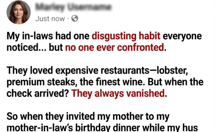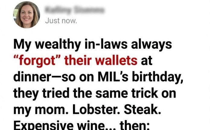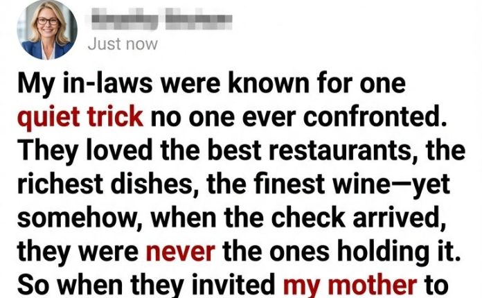 Betrayal & Redemption / Family Drama StoriesMy Wealthy In-Laws Always “Forgot” the Bill—So My Mom Went to Their Birthday Dinner and Taught Them a Lesson They’ll Never Forget February 16, 2026 - by Reading Times … My Wealthy In-Laws Always “Forgot” the Bill—So My Mom Went to Their Birthday Dinner and Taught Them a Lesson They’ll Never Forget Read More