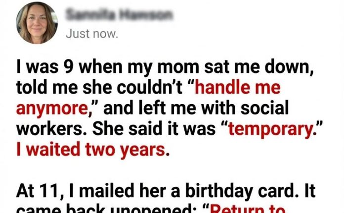 Betrayal & Redemption / Family Drama StoriesMy Mom Abandoned Me at 9—Twenty Years Later She Knocked, Smiling, Like Nothing Happened February 19, 2026 - by Reading Times … My Mom Abandoned Me at 9—Twenty Years Later She Knocked, Smiling, Like Nothing Happened Read More