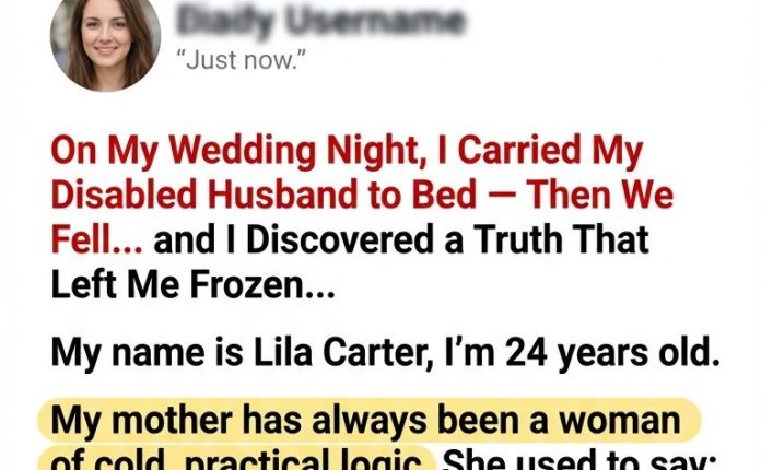 Betrayal & Redemption / Family Drama Stories / True-to-Life StoriesOn My Wedding Night, I Carried My “Paralyzed” Husband to Bed—Then Our Fall Exposed the Secret That Changed Everything February 23, 2026 - by Reading Times … On My Wedding Night, I Carried My “Paralyzed” Husband to Bed—Then Our Fall Exposed the Secret That Changed Everything Read More