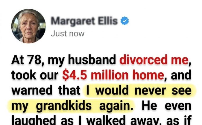 Family Drama StoriesAt 78, My Husband Divorced Me, Took Our $4.5 Million Home, and Said I’d Never See My Grandchildren Again—Then an Urgent Call Changed Everything April 23, 2026 - by Reading Times … At 78, My Husband Divorced Me, Took Our $4.5 Million Home, and Said I’d Never See My Grandchildren Again—Then an Urgent Call Changed Everything Read More
