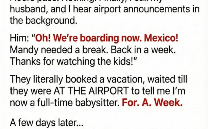 REDDIT STORYThey Planned a Vacation Together—And I Was Left Holding the Babysitting Duties – BMR January 23, 2026 - by Reading Times … They Planned a Vacation Together—And I Was Left Holding the Babysitting Duties – BMR Read More