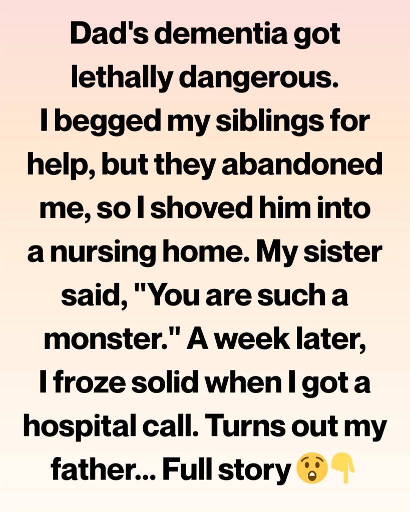My sister screamed that I was a monster. My brother accused me of “abandoning” our father like unwanted baggage. They spoke of loyalty and family as if I hadn’t been the one cleaning up burned pans and answering midnight phone calls. Their words sank into me like poison. I cried for days, replaying every moment, wondering if I’d taken the easy way out—if I had failed the man who raised us.