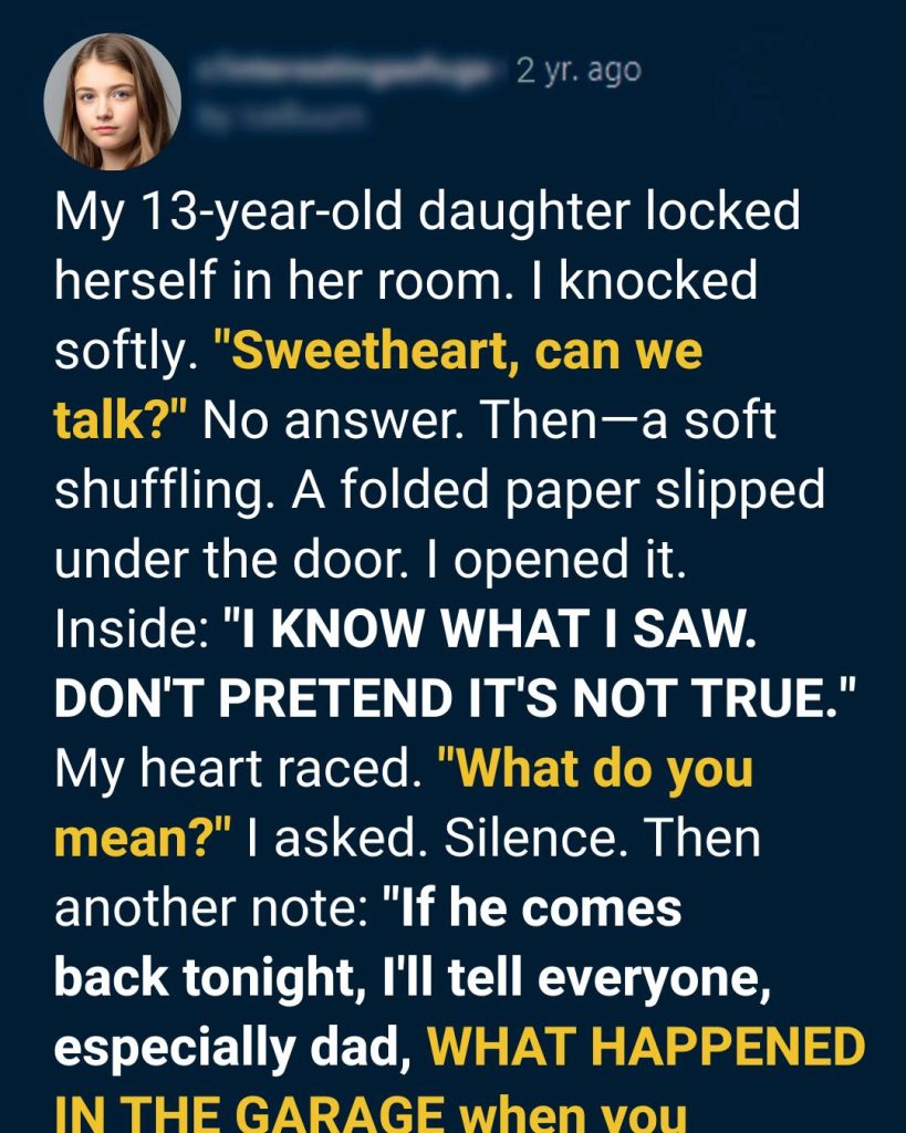 “I can’t fix this if I don’t know what’s wrong,” I whispered, leaning my head against the door. “We’ve always talked things through. Remember when you broke my favorite vase last year? I wasn’t mad then, and I won’t be mad now.”
