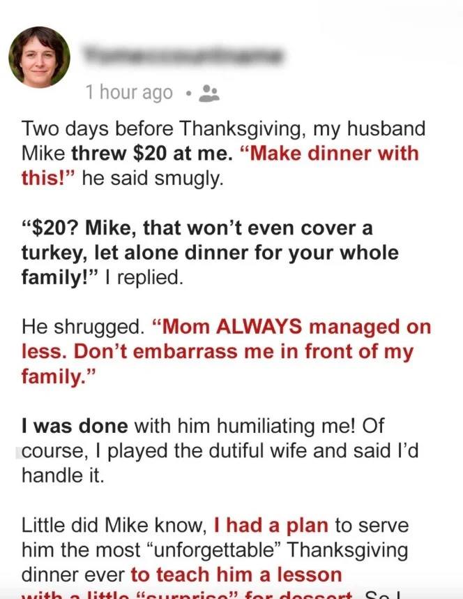 In this collection, unexpected twists, simmering tensions, and bold acts of revenge turn holiday gatherings into unforgettable spectacles. Get ready for feasts full of surprises and a side of scandal! My Husband Threw $20 in My Face and Demanded a Thanksgiving Feast — He Didn’t See My Revenge Coming