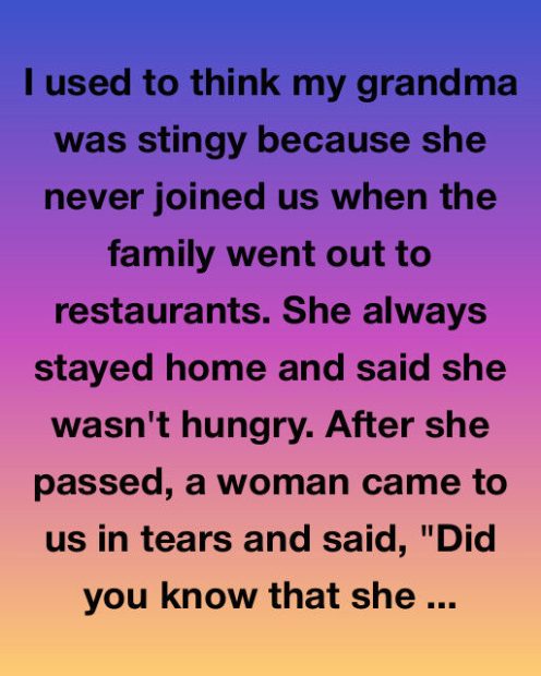 Growing up, the narrator always believed their grandmother was simply frugal. Whenever the family went out to eat, she would smile softly and decline, saying she wasn’t hungry. To a child’s eyes, it looked like she disliked spending money or didn’t enjoy crowded places. No one questioned her quiet refusals. They just accepted them as part of who she was — modest, reserved, a little distant.