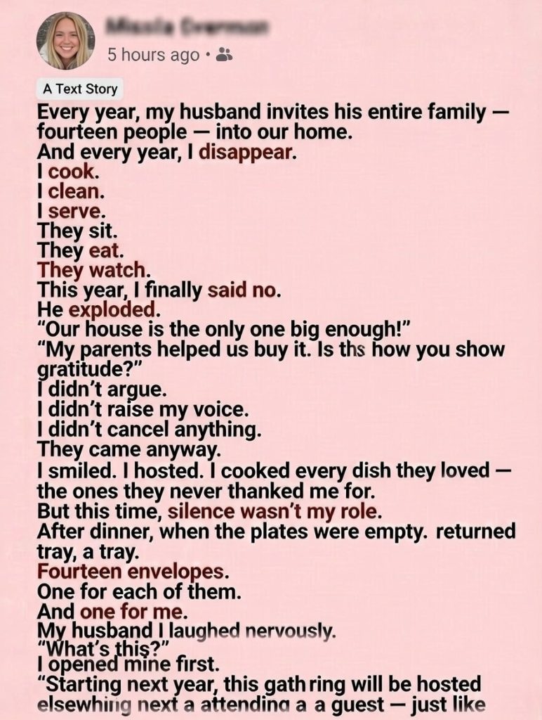 Every year, my husband invites his entire family—fourteen people—into our home.