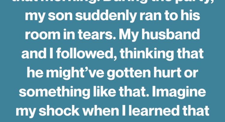 During the party, my son was sitting and chatting with one of his friends when, all of a sudden, he stood up and ran to his room in tears. My husband and I rushed after him, terrified that he might have gotten hurt or that something serious had happened.
