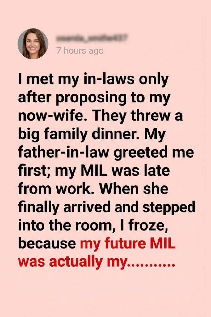 I met my in-laws for the first time right after I proposed to the woman who is now my wife. It was meant to be a milestone moment—the kind of evening people remember fondly years later. A home-cooked dinner, laughter around the table, stories from childhood, maybe a slightly embarrassing toast. I had rehearsed polite answers in my head, prepared to talk about my job, my plans, how much I loved their daughter. I wanted them to see I was steady, serious, someone worthy of her.
