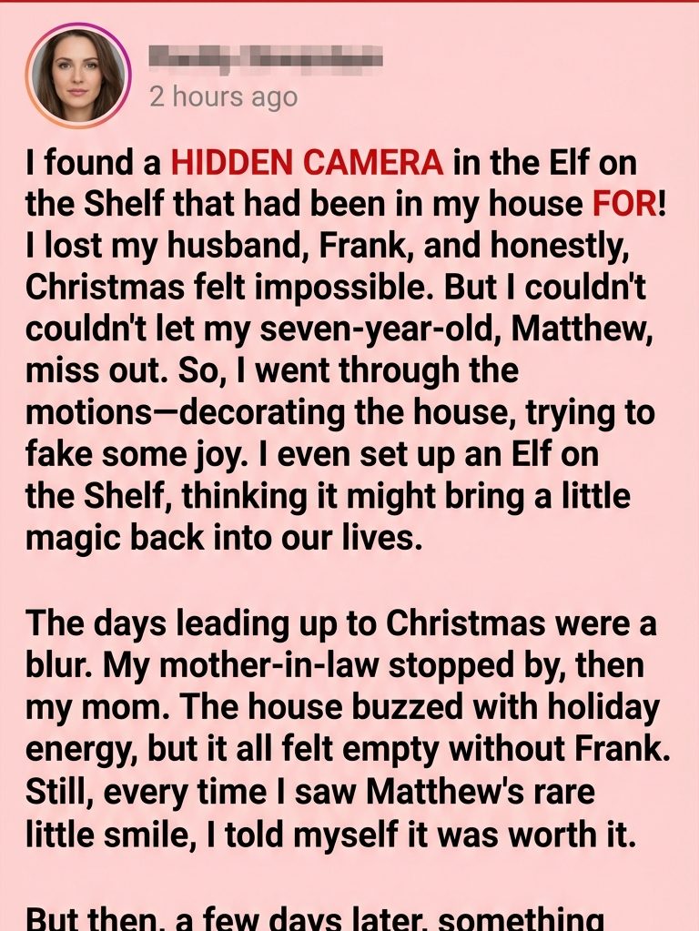 I spent hours setting up the perfect scenes for our elf, “Buddy,” ensuring he was in a new, whimsical spot every morning. The kids’ faces lit up with pure joy each time they found him, and for a moment, the stress of being a solo parent faded away. But then, things began to shift. I started noticing small, strange details I hadn’t planned. Items in the house were moved, and sometimes, I’d find Buddy in places I didn’t remember putting him. At first, I brushed it off as my own exhaustion, but the feeling that something was off grew stronger.