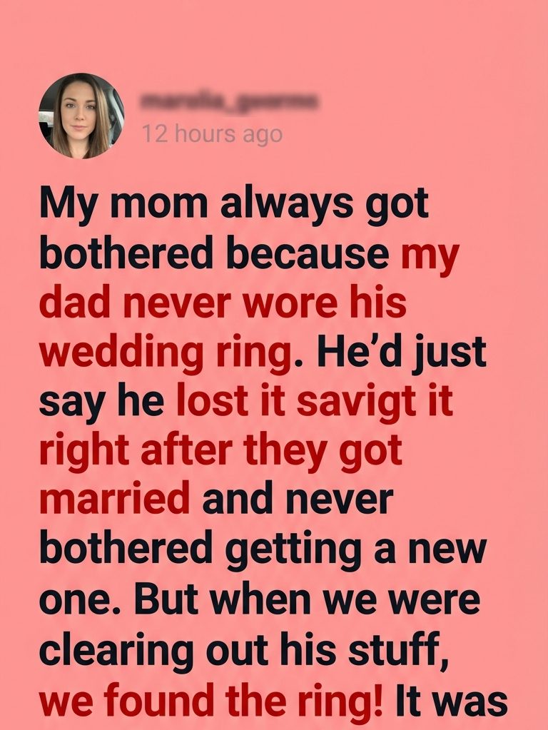 Whenever someone noticed, he’d shrug and say he lost it right after they got married. He never seemed upset about it. Never replaced it. My mom would laugh it off in front of others, but when it was just us, I could tell it hurt her.