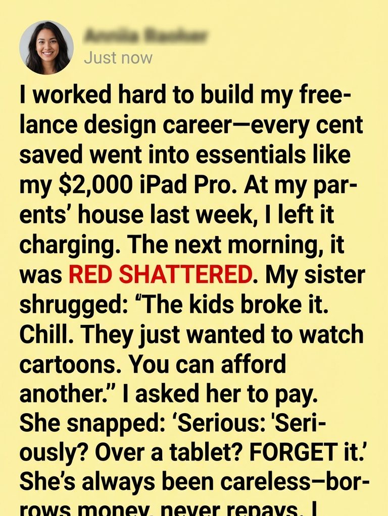 We’d gathered for the holidays. I left my iPad charging in Dad’s study—safe from little hands. The next morning, I walked in, expecting coffee, and instead found my lifeline destroyed.