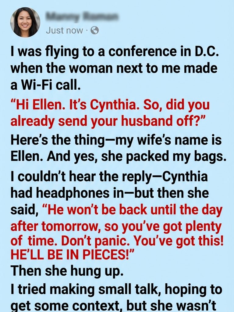 On a flight to D.C., a husband caught a chilling phone call: “Did you send your husband off?” followed by “He’ll be in pieces.” The caller? A stranger. The name she used? His wife’s. Panic surged—what was Ellen hiding? He rushed home early, only to uncover something that left him speechless.