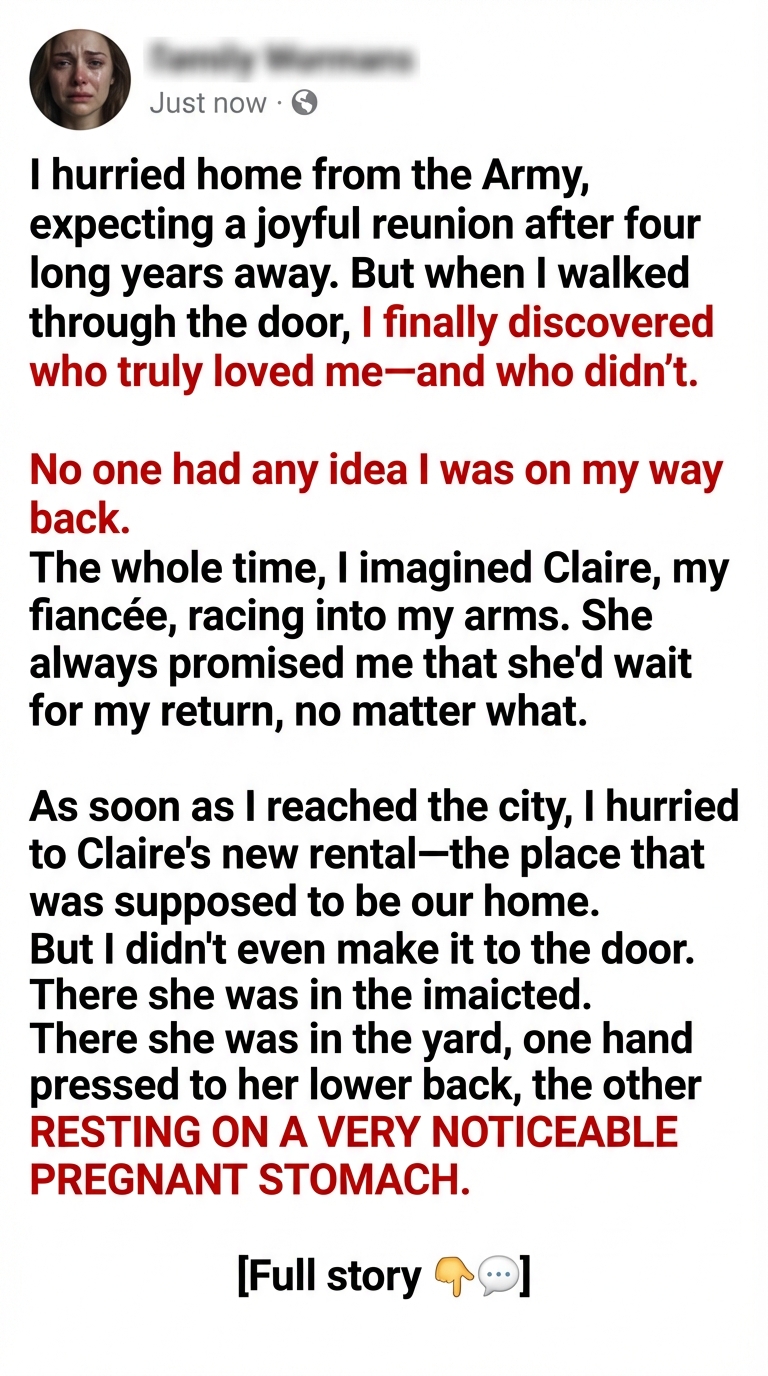 I came home from a four-year deployment expecting a tearful reunion. Instead, I found my fiancée in the yard—hugged, kissed, and very pregnant. And the man holding her was the last person I ever expected.