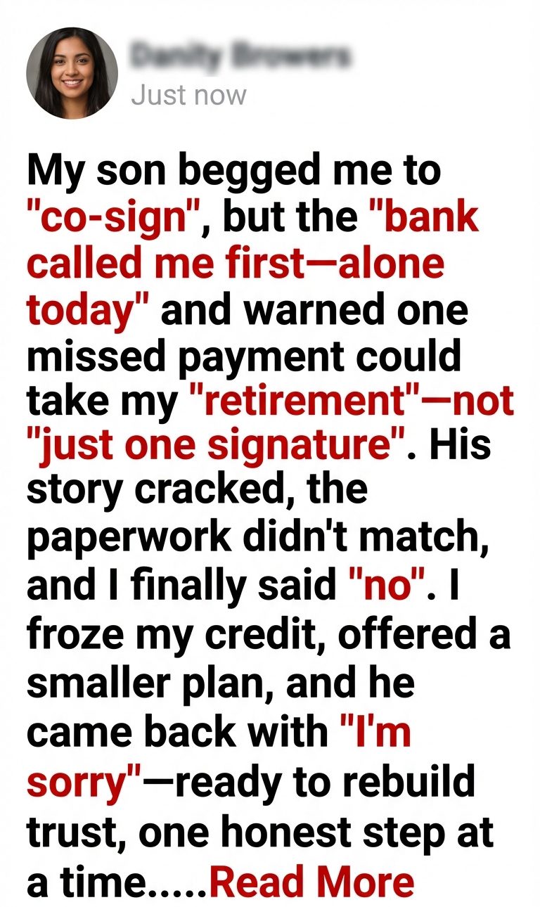 “It’s an approval window,” he’d said. “If I miss it, they’ll raise the rate. I need the car for work, Mom. It’s not a big loan. It’s “just one signature”.”