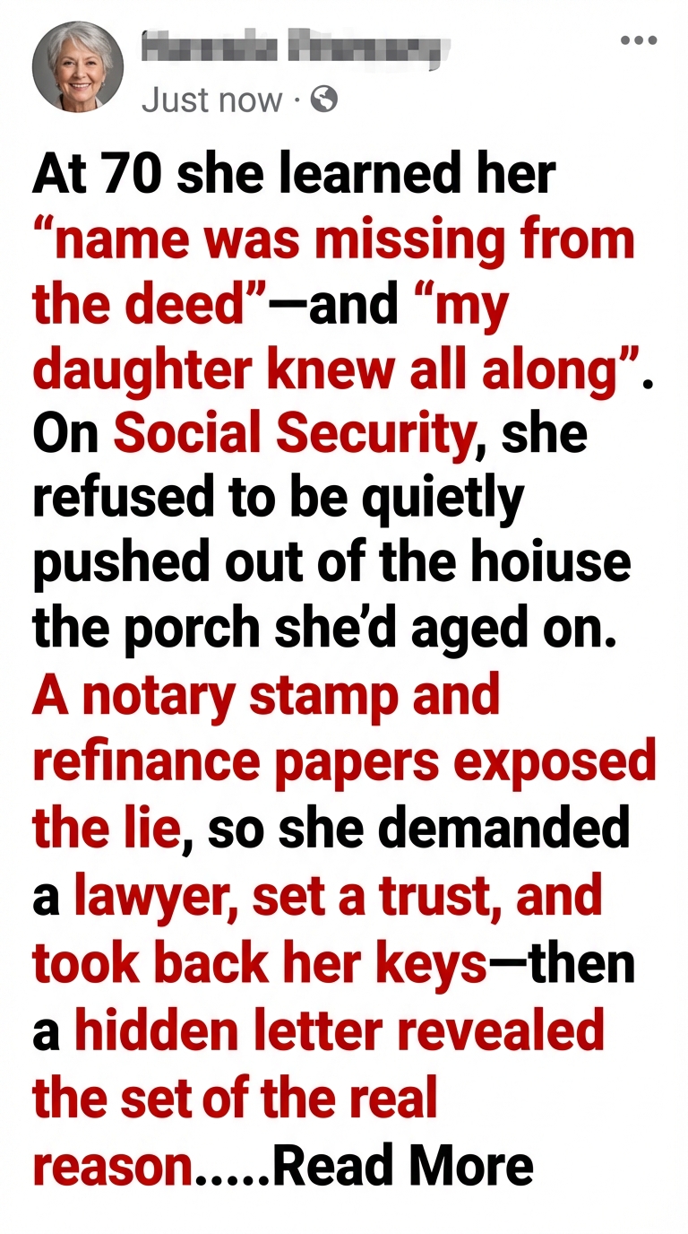 With the attorney’s help, we did. We restructured the deed to protect my right to live there. We established a “trust” that put the house in a safer legal container, shielding it from impulsive decisions and future pressures. We negotiated with the lender, adjusted payments, and mapped out a plan that didn’t involve tossing a seventy-year-old woman into the rental market like a piece of unwanted furniture.