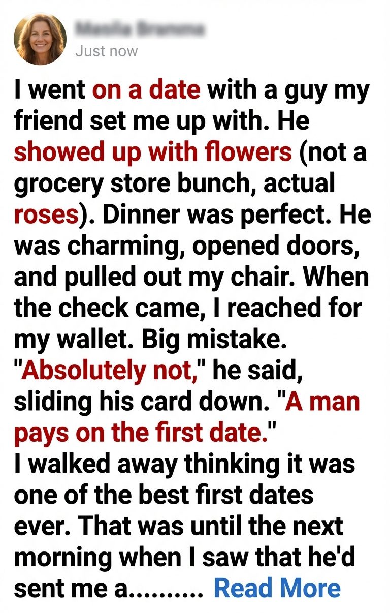 What started as a perfectly ordinary dinner quickly turned into a lesson I won’t forget. One evening that began with charm, thoughtful gestures, and easy conversation ended in confusion, discomfort, and a reminder that generosity only feels safe when it comes from the right place.