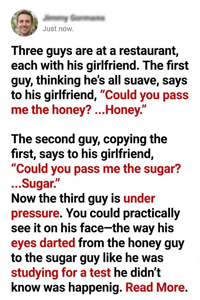 His girlfriend rolled her eyes in a way that still looked affectionate. She slid the honey across the table. “You’re ridiculous,” she said, smiling anyway.