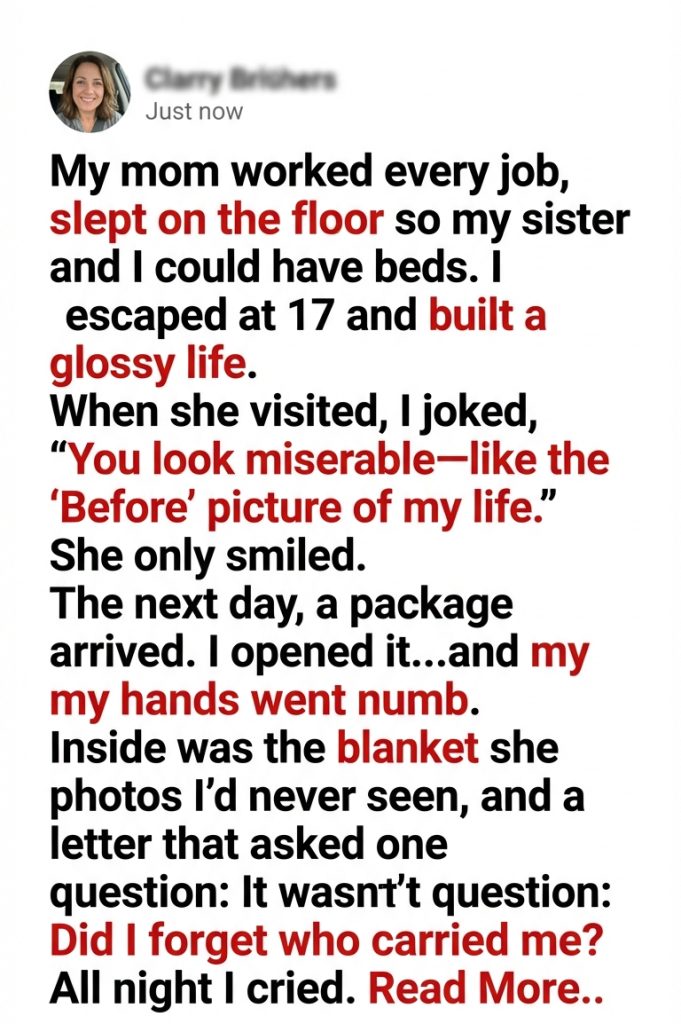“Mom didn’t send that box to punish you,” she said softly. “She sent it because she knew you’d listen to the truth when it looked like a ‘before and after.’ That’s how you see the world now.”