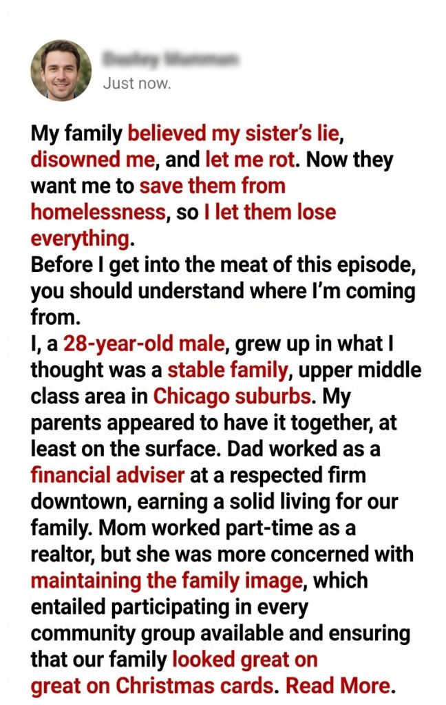 My family believed my sister’s lie, disowned me, and let me rot. Now they want me to save them from homelessness, so I let them lose everything.