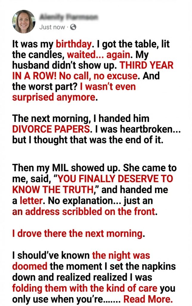 It was my birthday. I got the table, lit the candles, waited… again. My husband didn’t show up. THIRD YEAR IN A ROW! No call, no excuse. And the worst part? I wasn’t even surprised anymore.