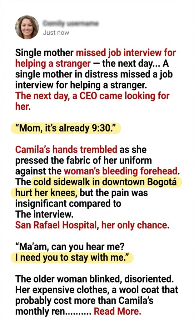 Camila’s hands trembled as she pressed the fabric of her uniform against the woman’s bleeding forehead.
