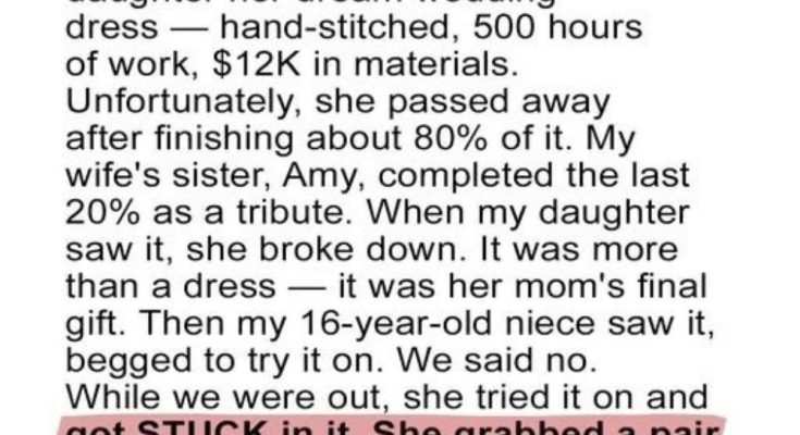 The wedding was just days away. The air in our home was thick with excitement, a palpable buzz of last-minute details and joyful chaos. The dress hung in a protective garment bag in the spare room, a sacred relic, waiting for its moment. I’d walked past that room a hundred times a day, just to peek in, to reassure myself it was still there, untouched. My beautiful girl deserved this, all of it.