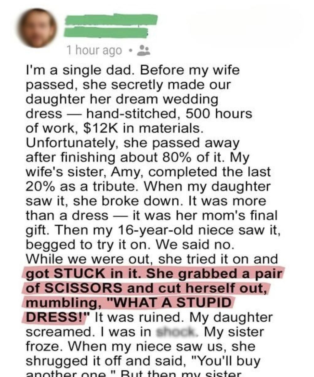 She took the dress. Carried it out of the house, carefully, almost reverently, leaving me and my daughter in the wreckage of our joy. The hours that followed were agonizing. My daughter was inconsolable, convinced her wedding was ruined. I tried to reassure her, even though my own heart was a lead weight. What could she possibly do?