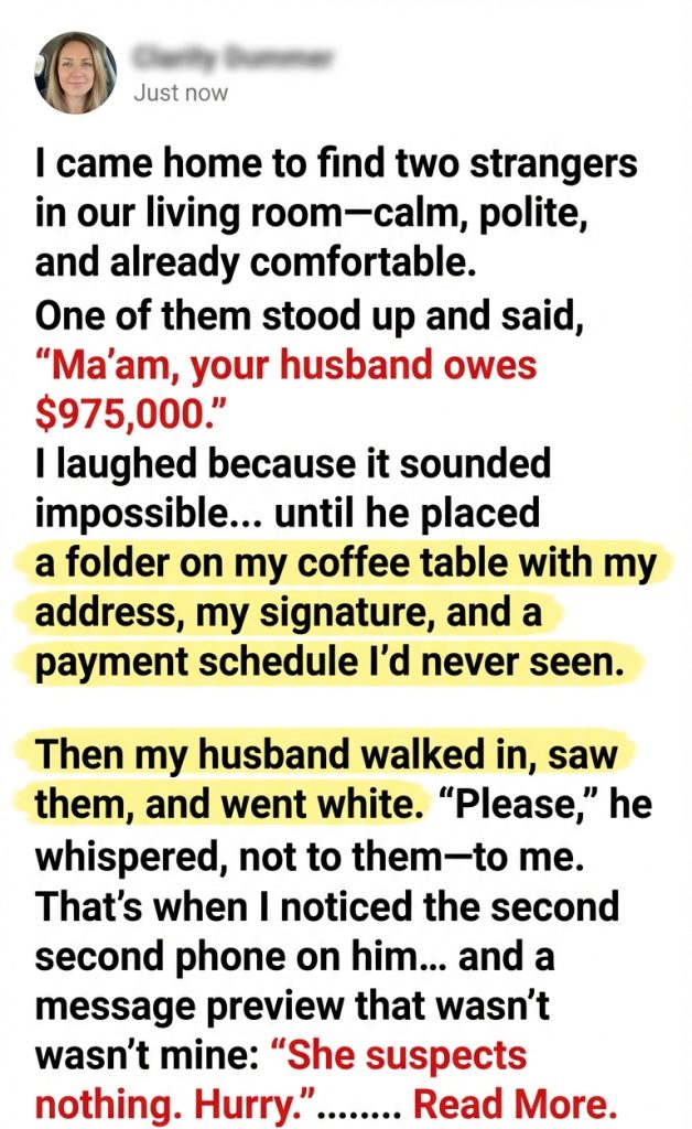 Sometimes it arrives as a number so big it dares you to ignore it… until strangers are sitting on your couch, and you realize the person you married didn’t just lie.