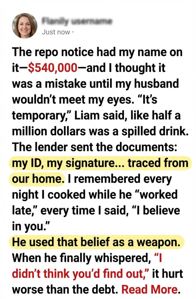 In the end, the loan was reassigned to Liam and his business. The repo action moved toward him, not me. The truck got taken a week later—because reality collects what denial doesn’t pay.
