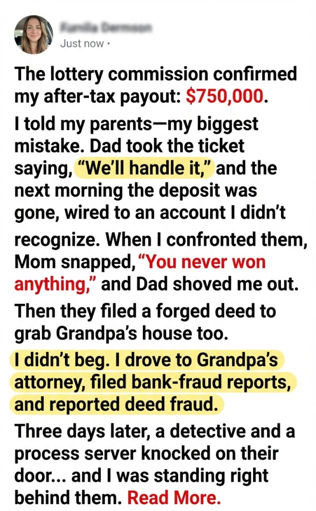 My Parents Took the $750,000 I Won, Denied It Ever Existed, and Tried to Steal Grandpa’s House Too