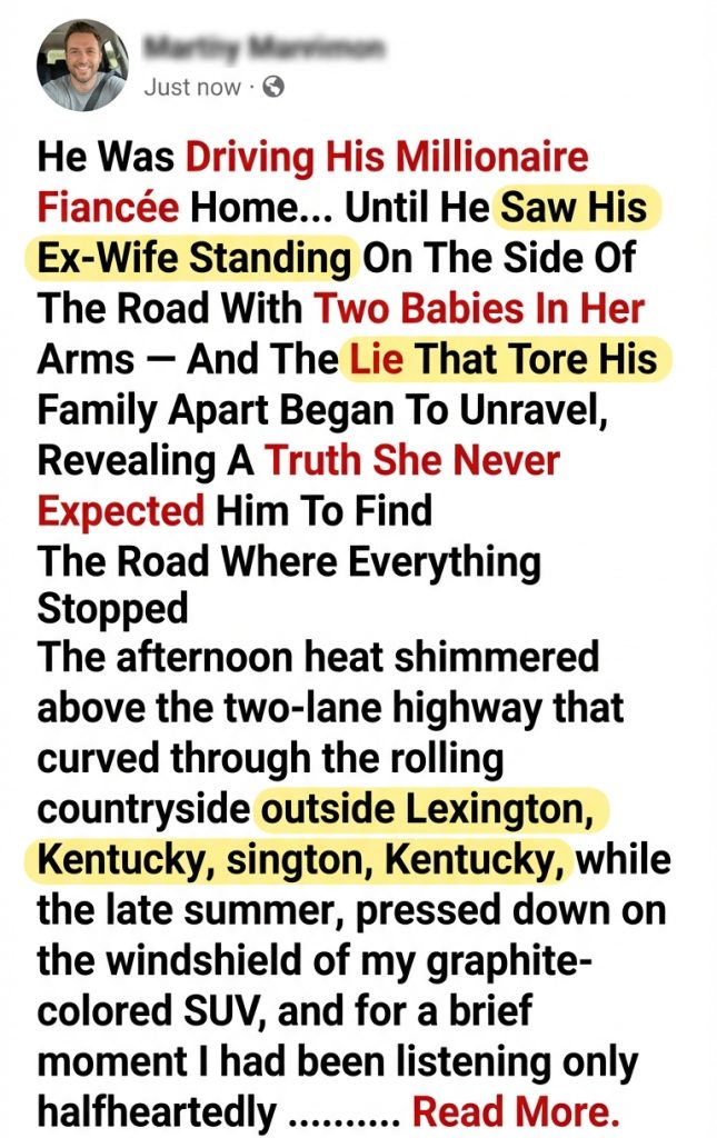 He Was Driving His Millionaire Fiancée Home… Until He Saw His Ex-Wife Standing On The Side Of The Road With Two Babies In Her Arms — And The Lie That Tore His Family Apart Began To Unravel, Revealing A Truth She Never Expected Him To Find