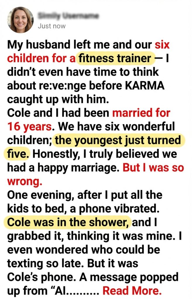 My husband left me and our six children for a fitness trainer — I didn’t even have time to think about re:ve:nge before KARMA caught up with him.