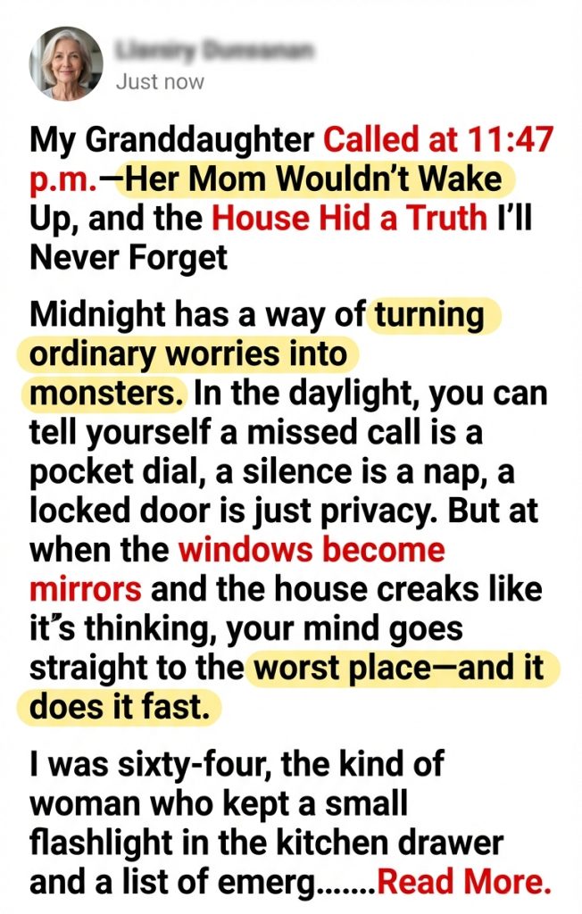 My Granddaughter Called at 11:47 p.m.—Her Mom Wouldn’t Wake Up, and the House Hid a Truth I’ll Never Forget