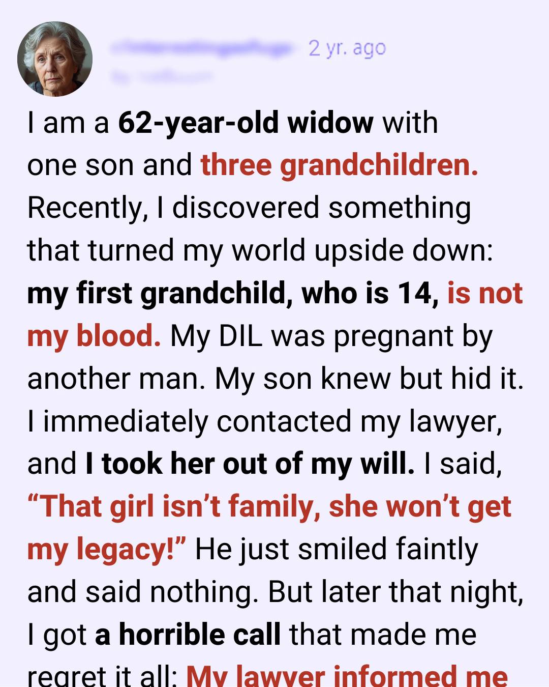 My first grandchild—the one I had adored for fourteen years—was not my blood. My daughter-in-law had been pregnant by another man when she married my son. Worse than that… my son knew. He had known all along. And he never told me.