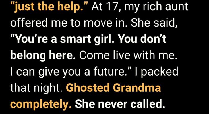 At seventeen, my aunt—my mom’s older sister—showed up. She had money, manicured nails, a walk-in closet bigger than our living room. She looked at me and said, “You’re a smart girl. You don’t belong here. Come live with me. I can give you a future.”