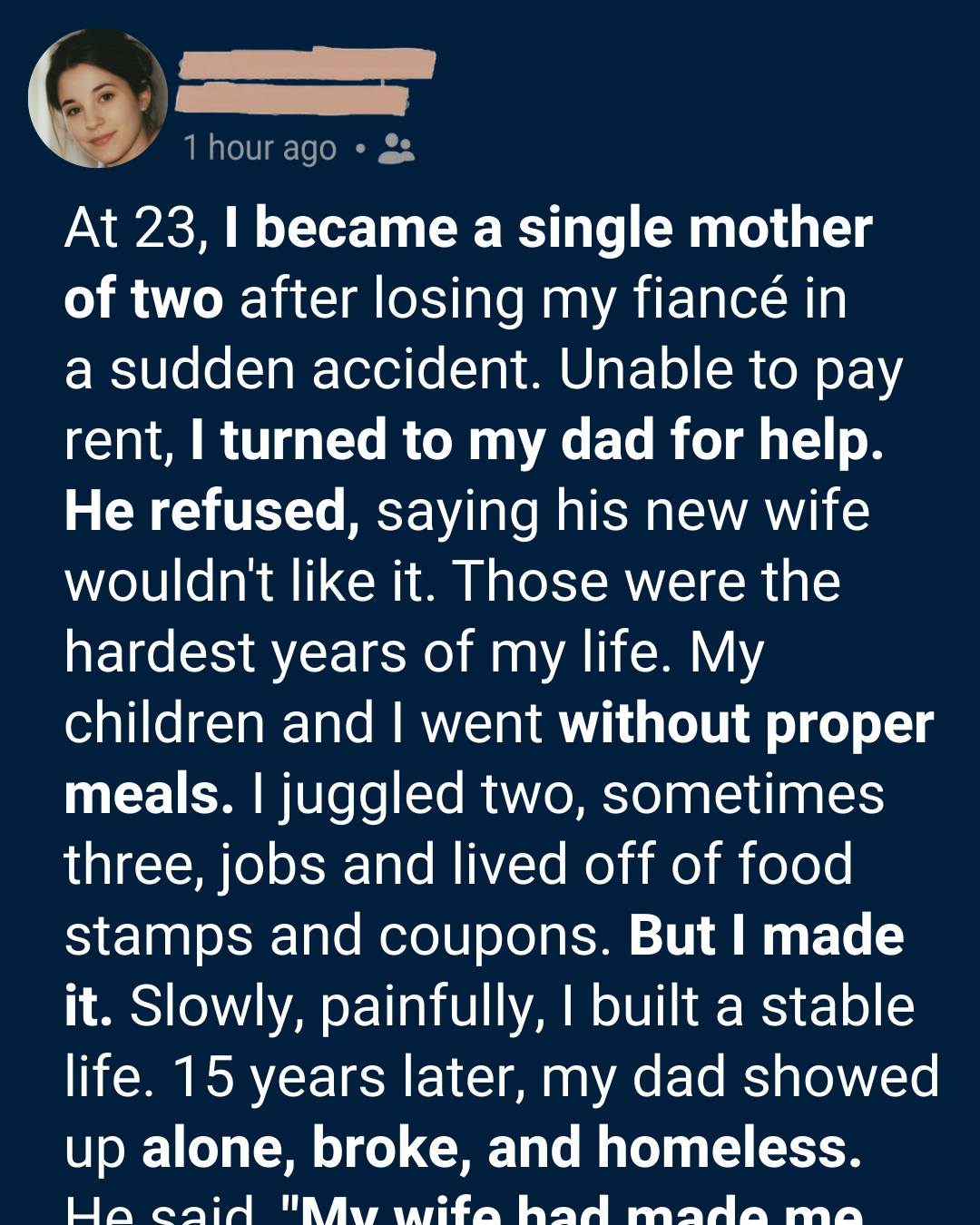 Desperate, trembling with both pride and exhaustion, I turned to my dad for help—the one person I believed would never let me and his grandchildren fall through the cracks.