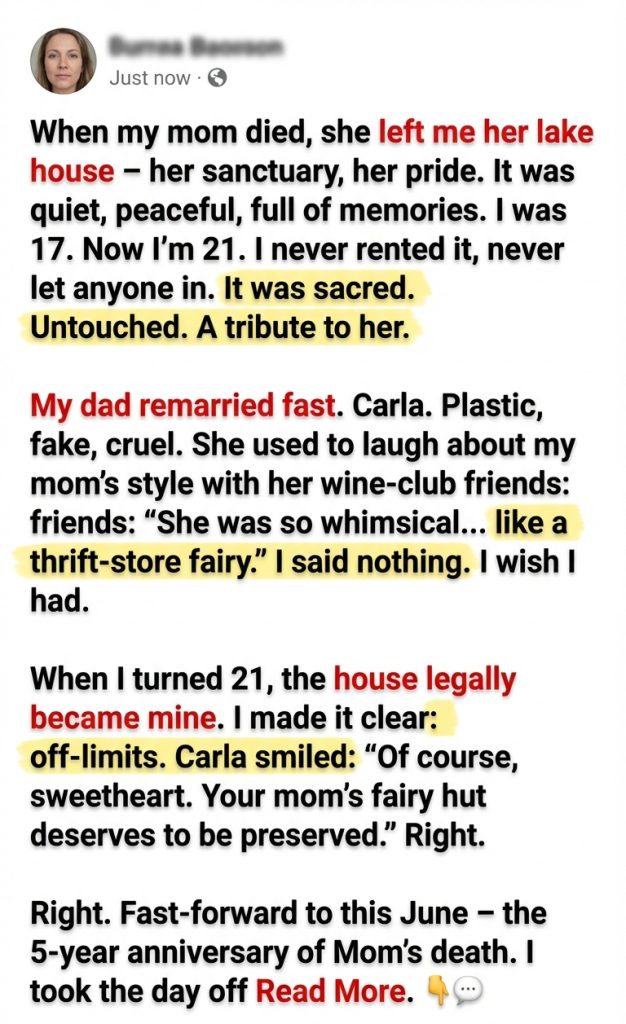 It was quiet, peaceful, full of memories. I was 17. Now I’m 21. I never rented it, never let anyone in. It was sacred. Untouched. A tribute to her.