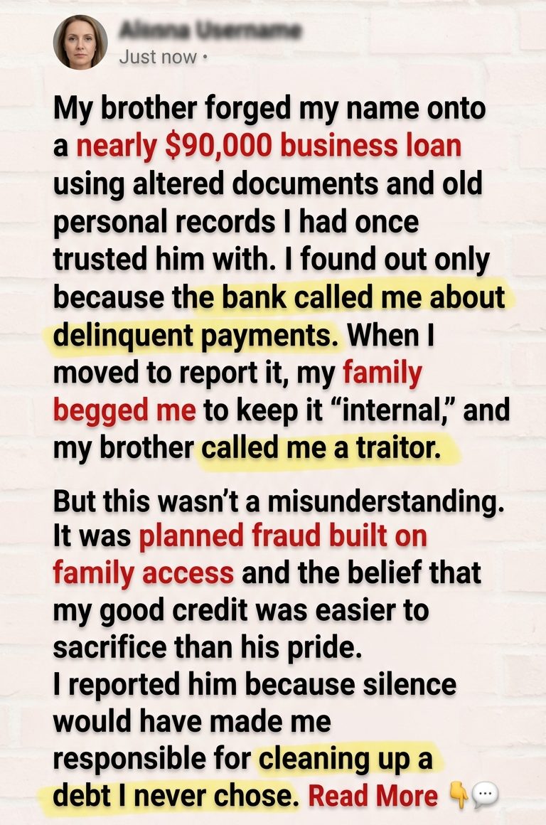 That word spread through the family faster than the actual truth. Suddenly aunts, cousins, and even an uncle I hadn’t spoken to in years had opinions about how siblings should handle things “internally.” Nobody seemed as disturbed by the forged loan as they were by the idea that I might let outsiders know it happened. That is one of the uglier realities of family betrayal: exposure is often treated as the greater sin than the act itself.