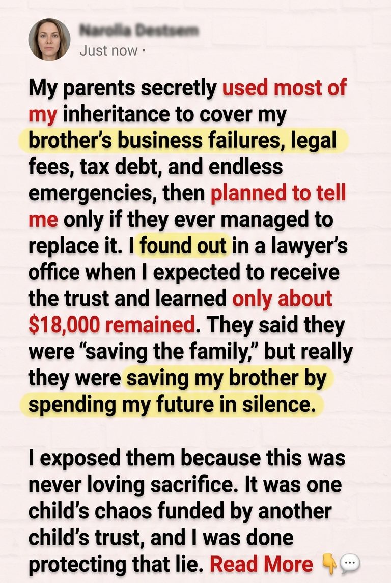 They say they were trying to save the family. But that is the lie at the heart of stories like this. They weren’t saving the family. They were saving Tyler, repeatedly, by quietly spending the child they believed would complain the least and recover the best. My brother’s debts didn’t just eat money. They revealed values. And those values were not mine to protect anymore.
