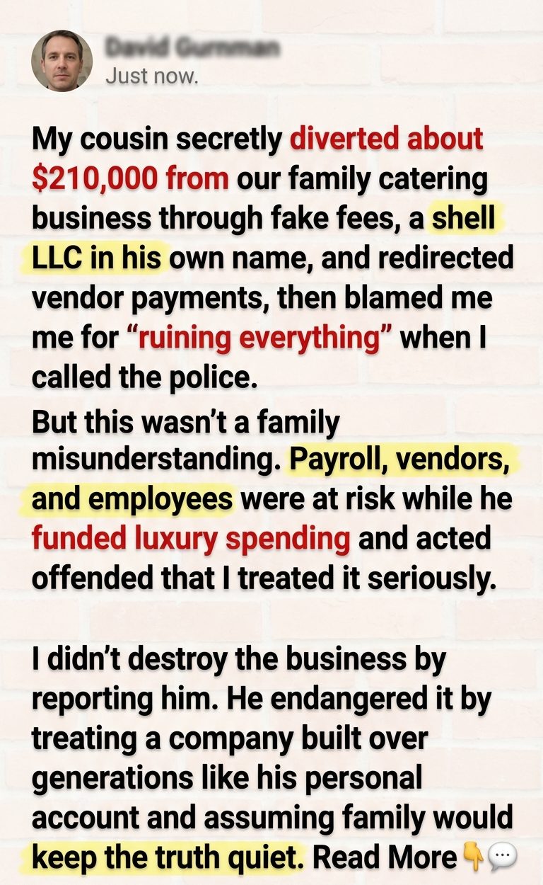 He laughed. Literally laughed. Then he said, “You’re really going to ruin the family over bookkeeping?” That sentence is still one of the ugliest things anyone has ever said to me. Because it revealed his hierarchy in full: not business survival, not employee security, not truth—family image first, even if that image required me to carry the damage quietly.