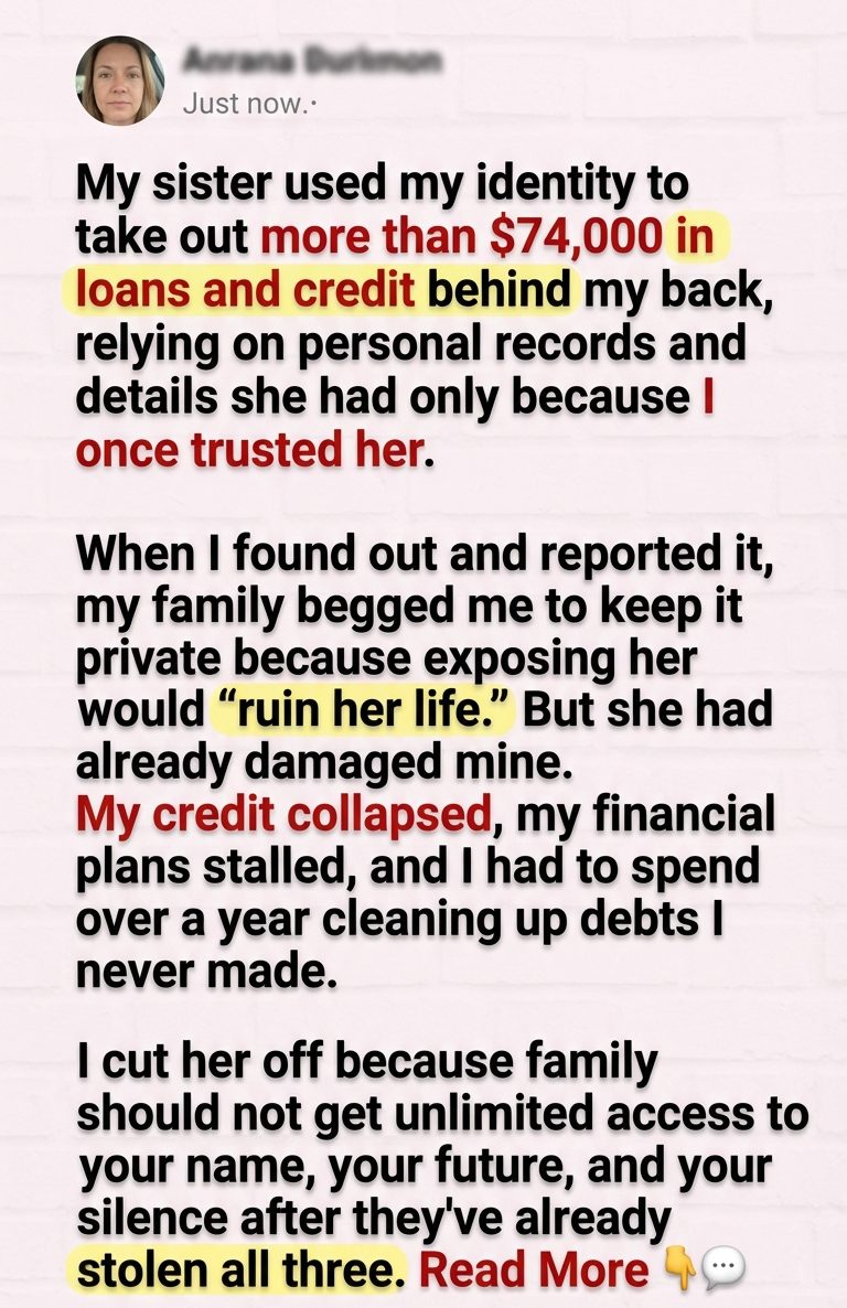 I learned that through details no stranger would have had. Old addresses. Copies of tax records I had once shared when helping her apply for a rental. Security questions built around family history. A mailing address linked to an apartment complex she lived in briefly after her divorce. Identity theft by a stranger would have felt violating. Identity theft by my sister felt like every ordinary act of trust in the last ten years had been turned into inventory.
