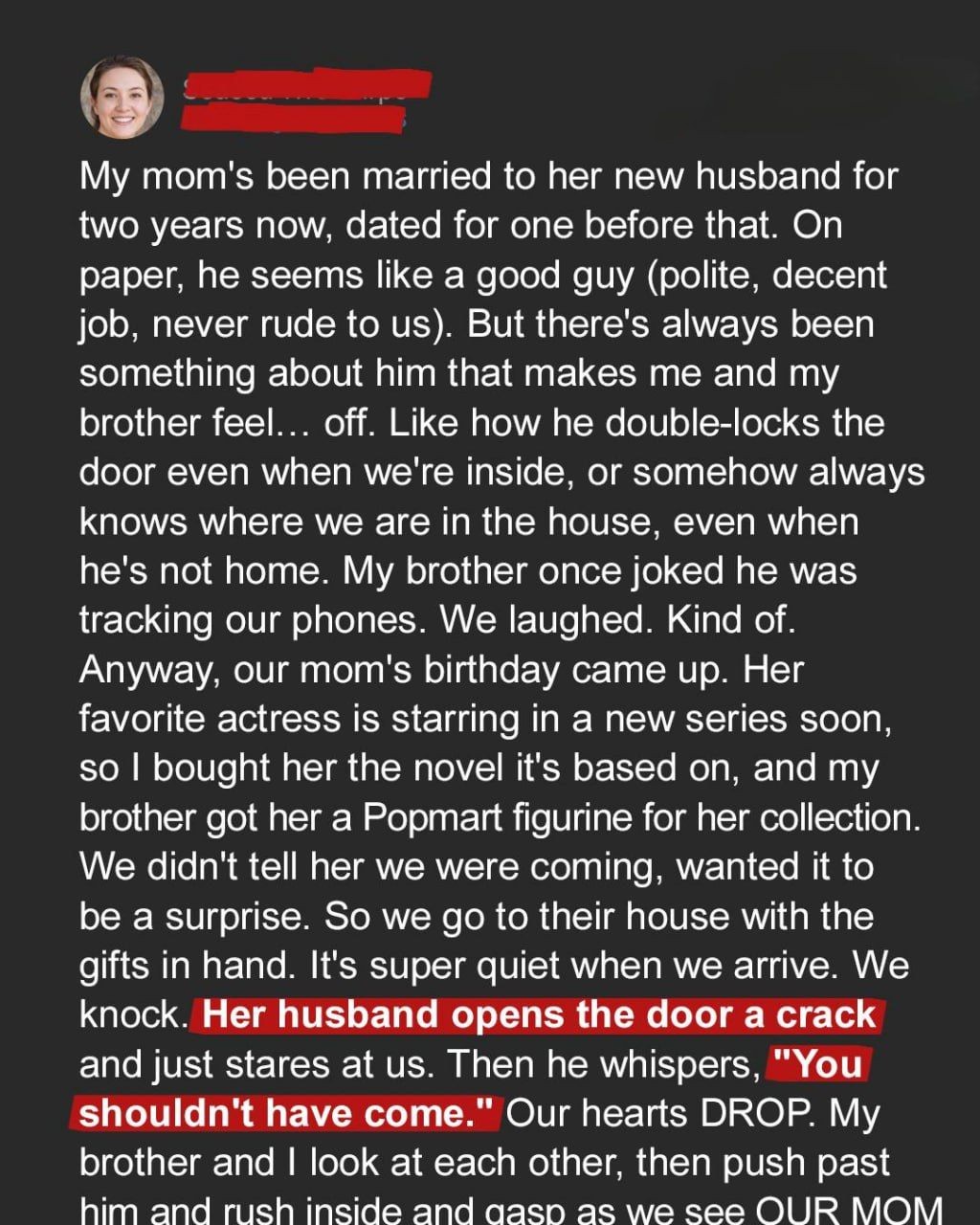 The entire evening, this “birthday celebration,” was his cruel, terrifying victory lap. A performance. A confession wrapped in a bow, delivered with a smile. My mother wasn’t just complicit in a lie; she was entangled with a monster. And now, I was too. The weight of it was suffocating. My entire life, every memory, every photo, every bedtime story, every moment of sorrow I’d ever felt, was a carefully constructed illusion around a horrifying, unspeakable crime.