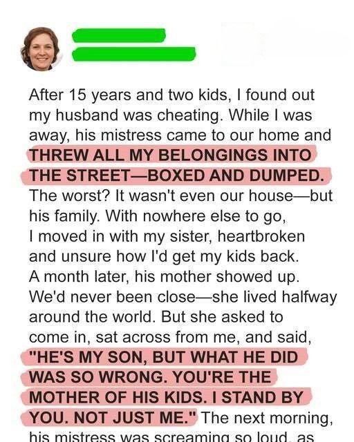 Then, a month after I was kicked out, my phone rang. It was his mom. My stomach clenched. Oh God, is she calling to tell me what a terrible wife I was? To gloat? I almost didn’t answer. But something in me, some desperate need for a voice from my old life, made me pick up.