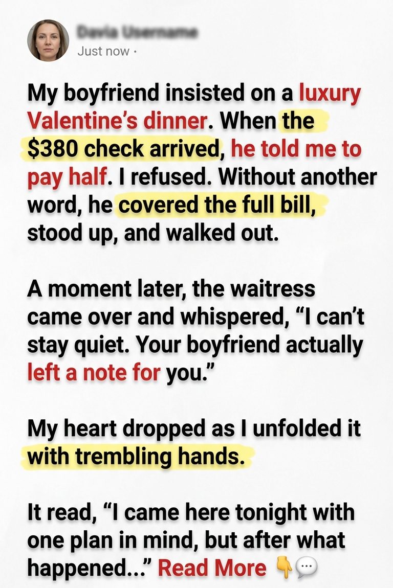 I stared at him, trying to understand. He had planned this entire night. He chose the place. He insisted on the wine. He’d been the one saying, “Tonight’s special.”