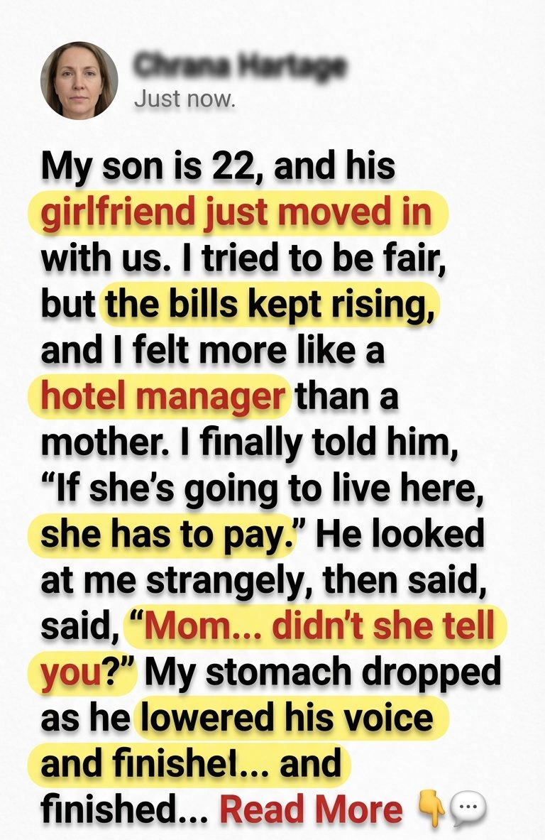 I’ve been raising my son alone since he was 5. He’s 22 now, and his girlfriend, Mia, started staying here full-time. At first, I tried to be fair. But bills were rising, and I felt like a hotel manager.