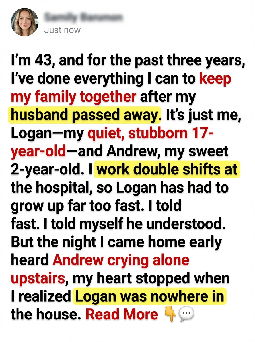 Logan is seventeen. Tall, quiet, stubborn in ways that remind me so much of his father it sometimes hurts to look at him. Andrew is only two. Still soft-cheeked, still reaching for me in his sleep, still saying “Mama” like it’s the safest word in the world.