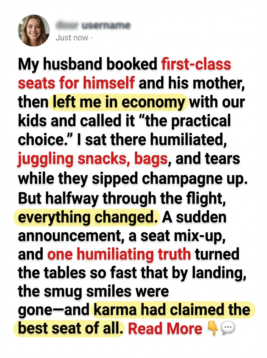 I used to believe marriage meant partnership. Shared burdens. Shared sacrifices. Shared respect. But the moment my husband booked business-class tickets for himself and his mother — while assigning me and our three children to economy — I realized I had been living in a carefully constructed illusion. What happened afterward wasn’t just revenge. It was the moment I reclaimed my life.