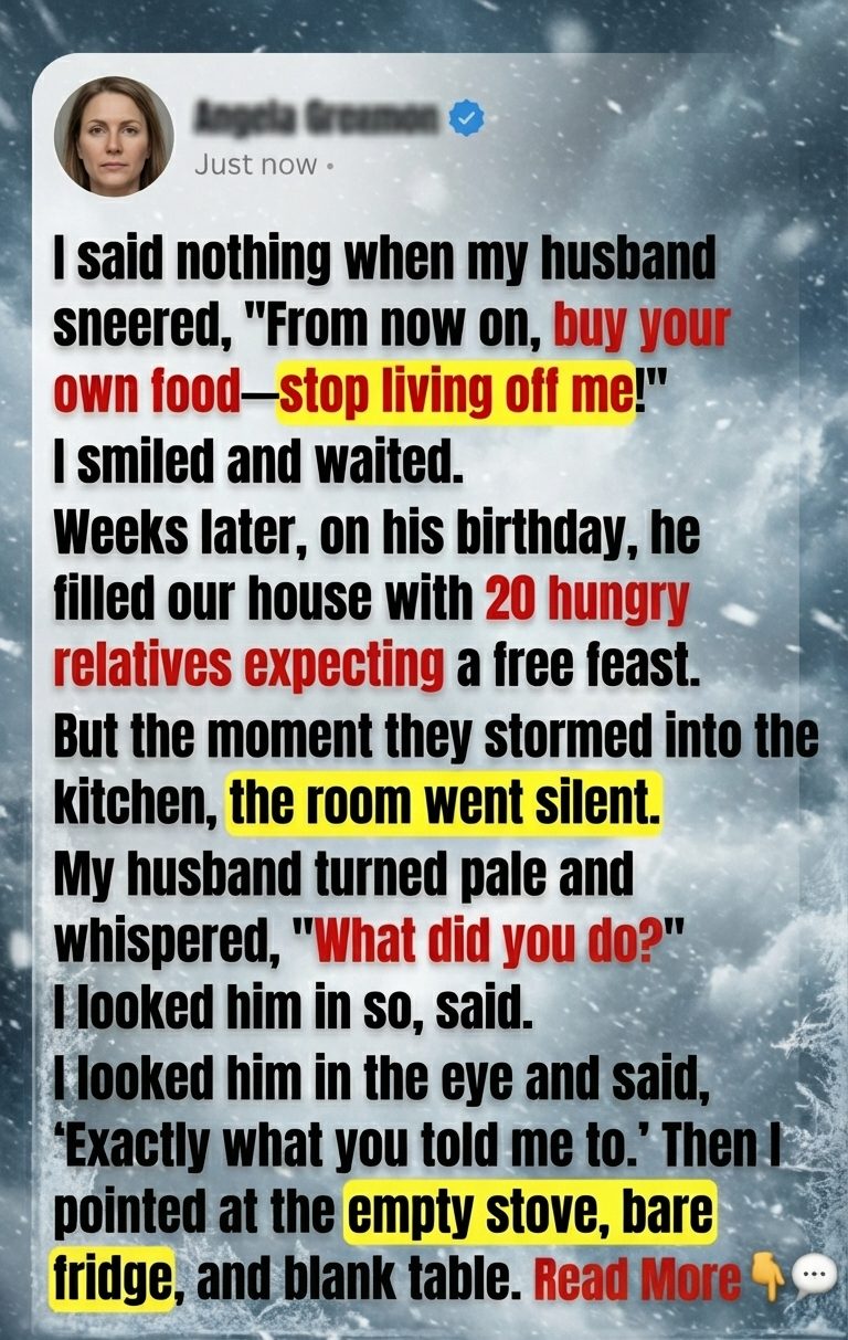 My husband sneered, “From now on, buy your own food—stop living off me!” and expected me to cry, argue, or beg.