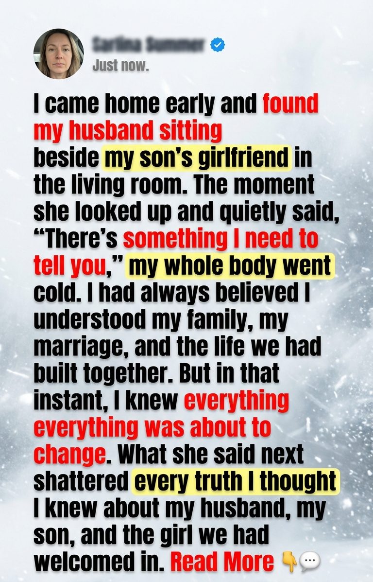 They hadn’t heard me come in. My purse slipped from my shoulder and landed soundlessly against the wall, but I barely noticed. Every nerve in my body had gone tight. I stood there with one hand still on the front door, listening to my husband’s voice drifting from the living room in a tone I had never heard him use with another woman. It wasn’t romantic. It was worse. Gentle. Careful. The kind of voice people use when they are standing too close to a truth they’re afraid to touch too quickly.