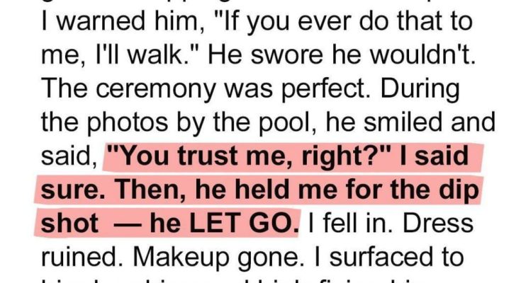 The rest of the day was a blur of frantic attempts to salvage something. A change into a borrowed dress, a hastily reapplied makeup. The forced smiles, the awkward compliments. Everyone kept telling me what a “fun” story it would be, how “spontaneous” he was. I tried to laugh along, to pretend it was all just a hilarious prank. But the coldness lingered, both from the water and from a chilling, undefinable unease. And etched into my mind, clearer than any photo, was my dad’s face. That look.